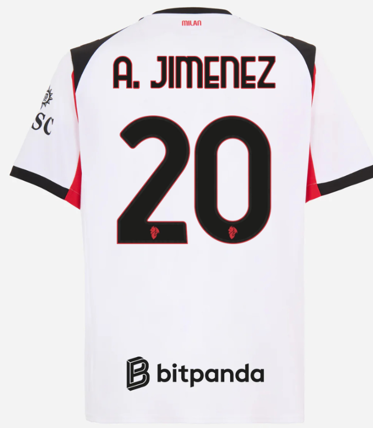We provide AC Milan Away A. JIMENEZ 20 Jersey 25-26. Buy AC Milan Away A. JIMENEZ 20 Jersey 25-26. Show your support for AC Milan with the latest AC Milan Soccer Kits.